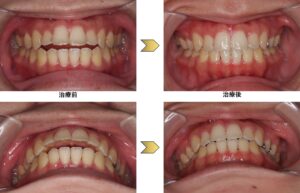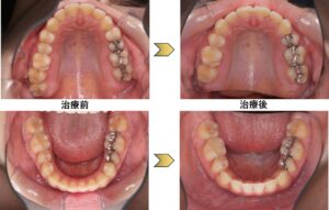 上小臼歯2本、下小臼歯2本を抜歯して上前歯は後退させ、下は前歯のでこぼこを改善しました。