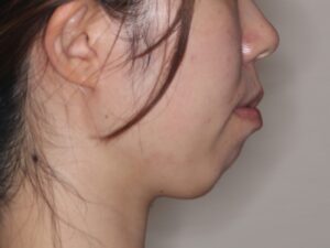 口元が突出していて口は閉じにくく、無理して口唇を閉じると顎に梅干し状のシワができてしまっています。