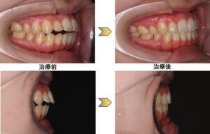 ・治療後は上下前歯の突出が改善して、上下の前歯もかみ合っています。